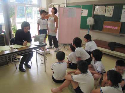 かわいい1年生も緊張の面持ちで発育測定に臨んでいました。