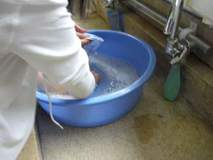 全自動洗濯機が普及してはいるものの、意外と手洗いをしたことがある子たちが多く、手慣れた様子に少し驚きました。