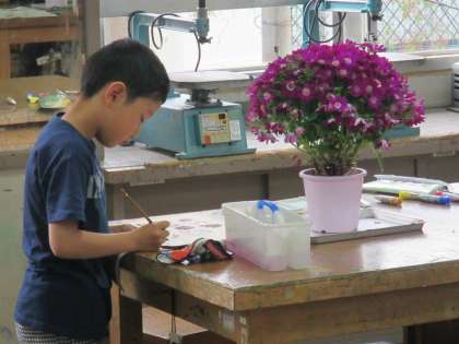 すっかり絵具の扱いも上手になった3年生。