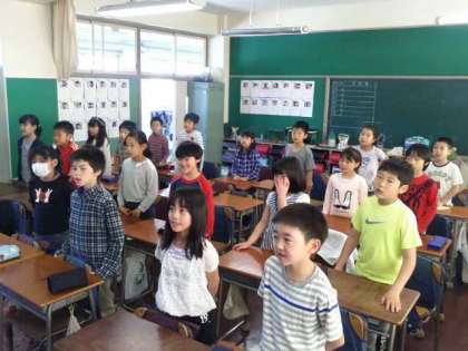 各学年ごとの言葉と教育目標を元気いっぱいに朗誦しました。