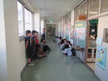 廊下で待っている子たちにも緊張感が漂っています。