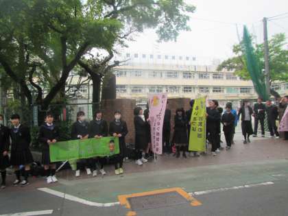 学び舎合同のあいさつ運動が今朝も行われました。