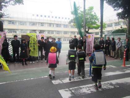 先生たちもにっこりのあいさつ運動となりました。