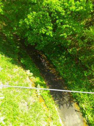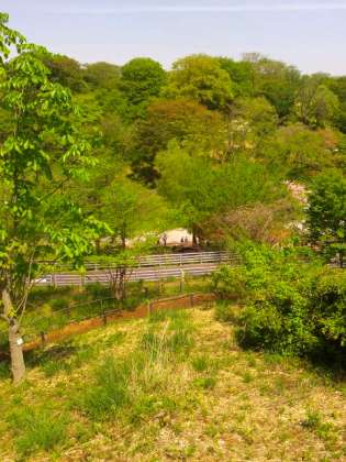 新緑が目に眩しいオリエンテーリングコースを子どもたちが行きます。