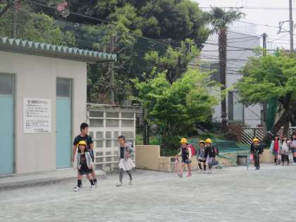 黄色い帽子の一年生は、登校の時にもとても目だつ存在です。