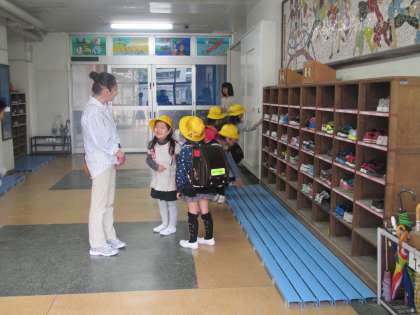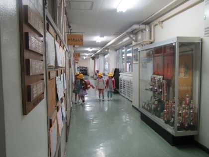 玄関で先生に挨拶をし、校長室の前を通ってお教室へ。