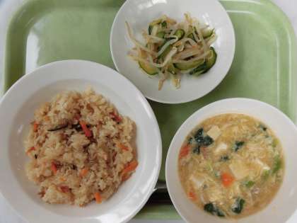 【献立】中華おこわ・中華風コーンスープ・野菜の中華和え・牛乳