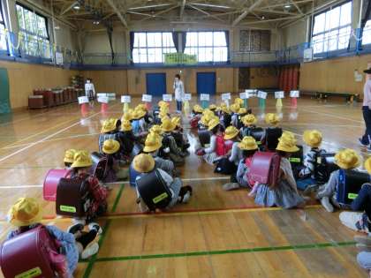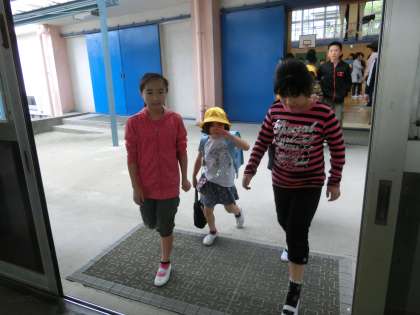 集合場所も、同じ地区班のメンバーもわからない1年生を、6年生が迎えに来てくれます。