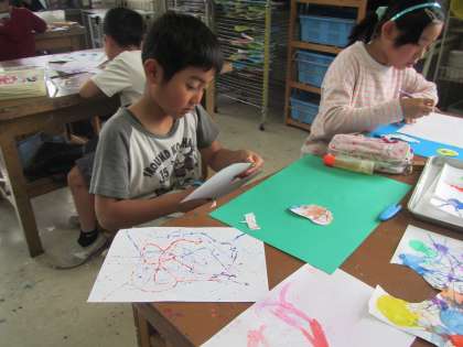 4年生は図工の時間に簡単なコラージュをつくっています。