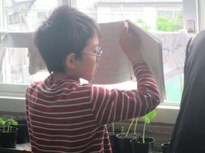 4年生が理科の学習で一日の気温の変化を計測をしました。