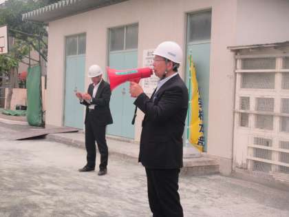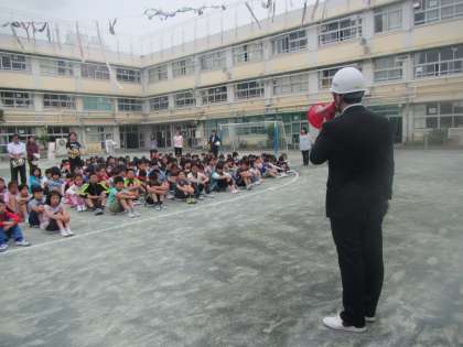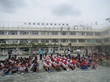 とても静か、静まり返った校庭で校長先生のお話を聞きます。