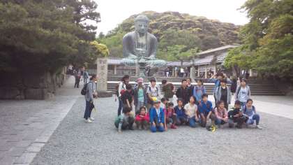 鎌倉の大仏に到着しました。雨は大丈夫です。集合写真を撮り、これからハイキングに出発します。