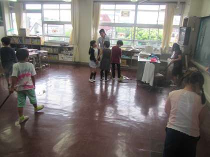 各学級でもじっくりと清掃に関する指導をして、さっそく清掃開始!