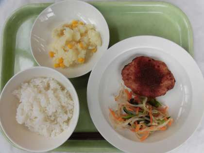 【献立】ごはん・豆腐入りハンバーグ・和風ソース・おひたし