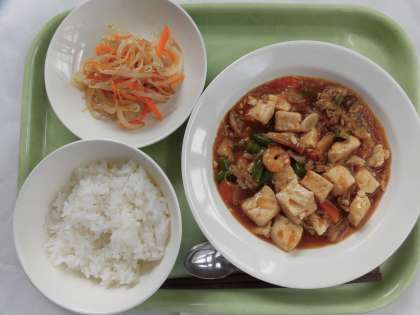 【献立】ごはん・四川豆腐・もやしのごま醤油かけ・牛乳