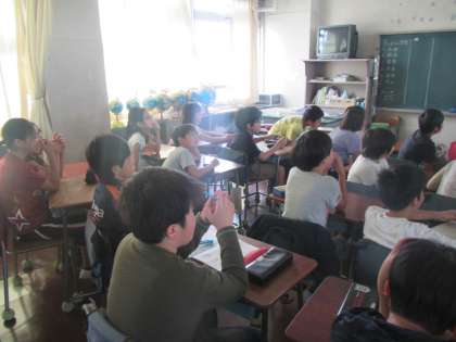 今日はスライドショーを観ながら昨日の遠足を振り返りました。