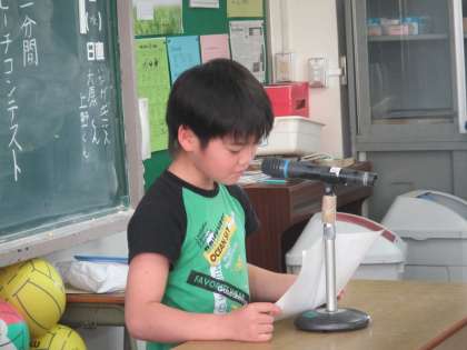 今日はその遠足を振り返ってスピーチコンテストを行いました。