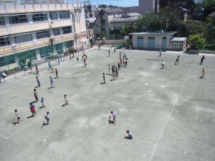 休み時間にも温かい雰囲気が校庭を包んでいました。