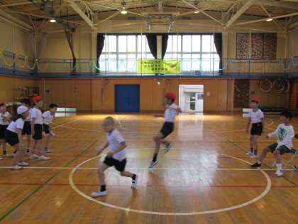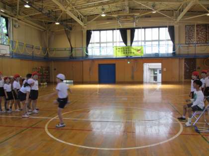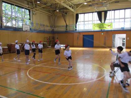 先日の朝会での雪辱を果たすべく挑戦する4年生。