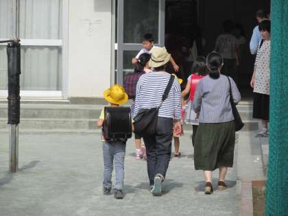 学校公開日ということで、保護者の方と一緒に登校する子もたくさんいました。