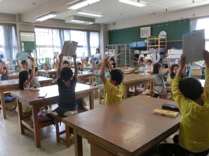 1年生は図工の時間に「へんしんかあど」に挑戦しました。