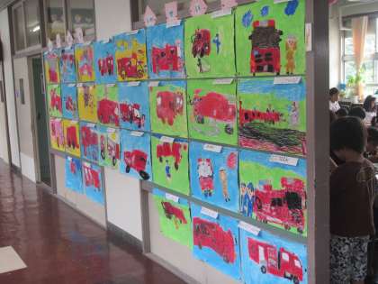 写生会に来てくれた消防士さんが見たらみんなニッコリすることでしょう。