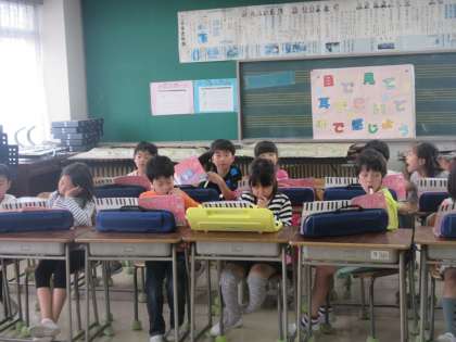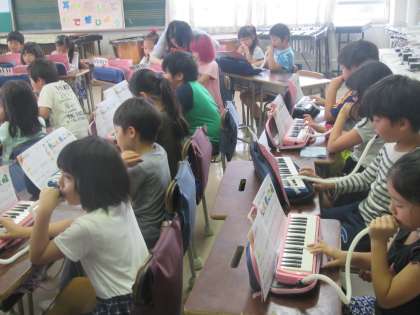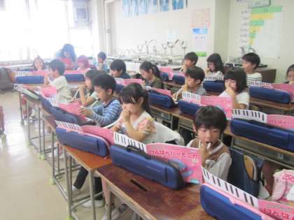 2年生が音楽の時間に鍵盤ハーモニカの練習をしました。