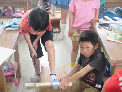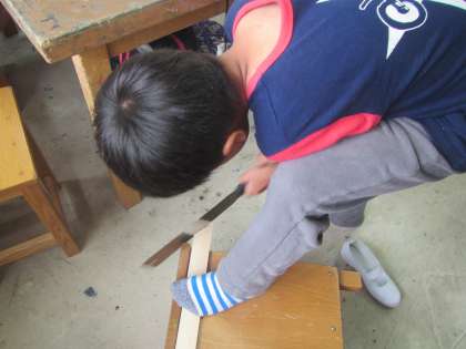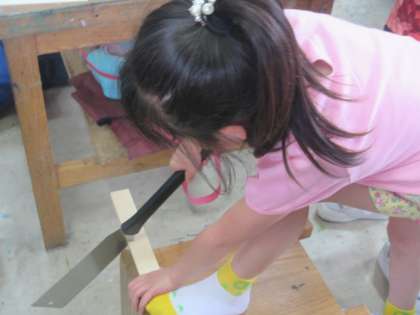 角材を欲しいサイズに切り取るためにのこぎりが大活躍!