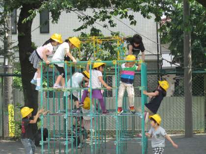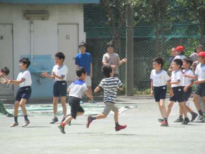 休み時間の校庭では、たくさんの子が元気いっぱいに遊んでいます。