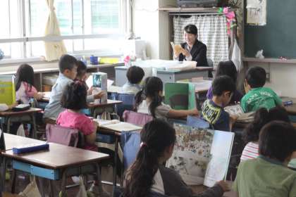1年生の先生も一緒に本を読んでいました。