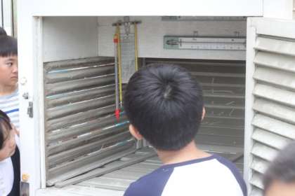 校庭にある百葉箱を興味深く観察しました。