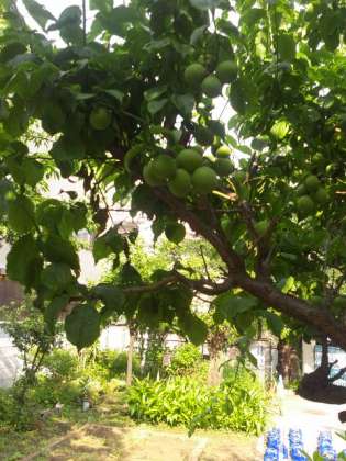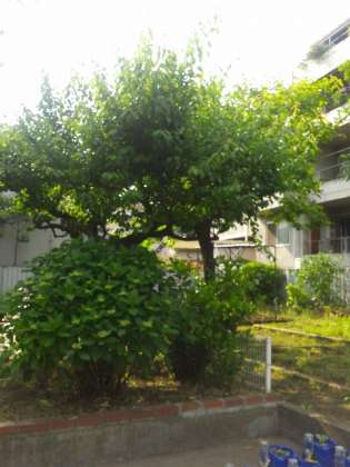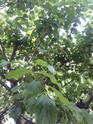 今年の2月に見事な花を咲かせた梅の古木が、立派な実をたくさんつけています。
