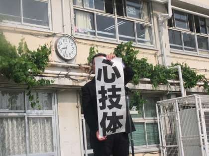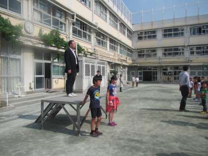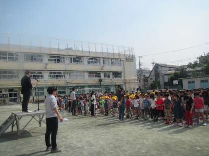 夏を思わせる日差しの中で、全校朝会がありました。