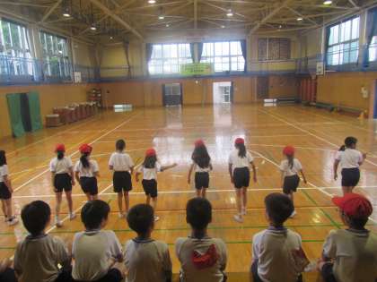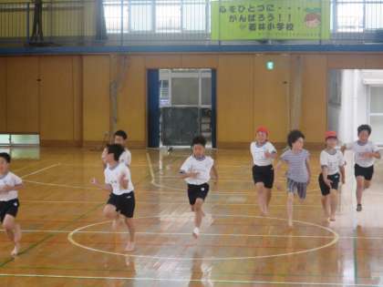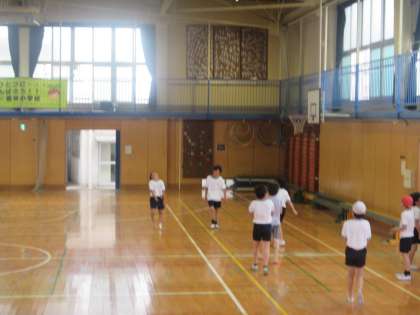 4年生が体育館でシャトルランに取り組みました。