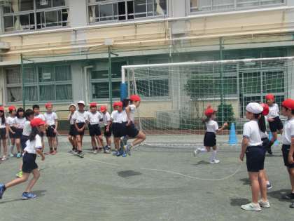 ウォーミングアップとして行った長なわとびで最高記録が飛び出し、ますますやる気満々の4年生。
