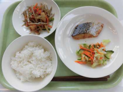 【献立】ごはん・魚の照り焼き・ひとしお野菜・きんぴらごぼう・牛乳
