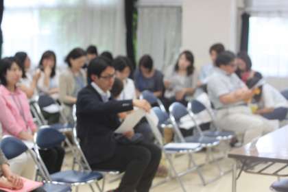 会議室に保護者の皆様や教職員があつまり、今年度の活動について話し合いました。