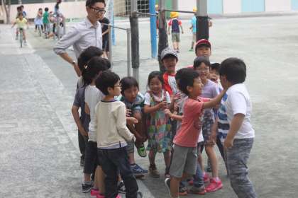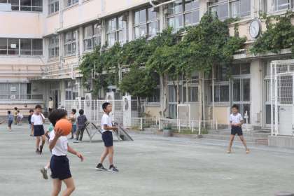 5年生が川場移動教室に行っているため、いつもよりもちょっと広く感じる若小の校庭です。