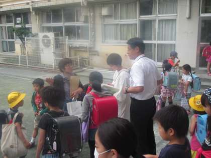 今朝から代表委員さんと児童会役員さんが職員室前に立って募金活動をしています。