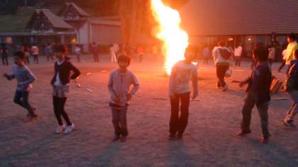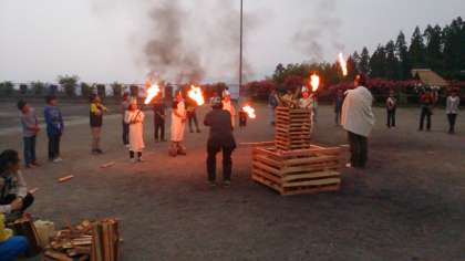 火の神が登場し、点火してからは、ジンギスカンやマイム・マイムなどの踊りやレクリエーションを楽しみました。