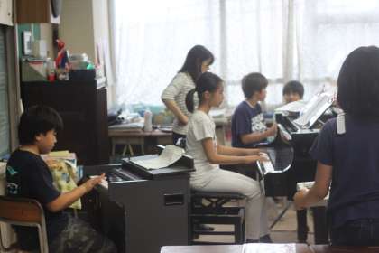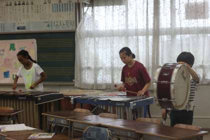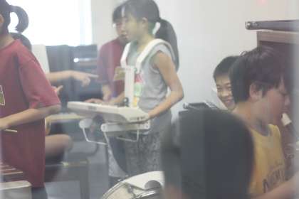 色々な楽器を試しながらハーモニーを作り上げていました。