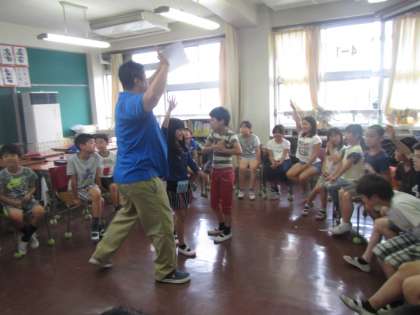 3年生と4年生の教室にALTのデイニー先生がやってきました。