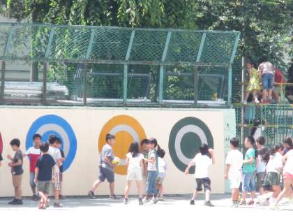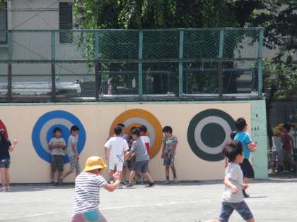 校庭で子どもたちが元気に遊んでいます。