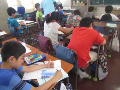 川場移動教室から帰ってきた5年生は、さっそく川場新聞にまとめています。