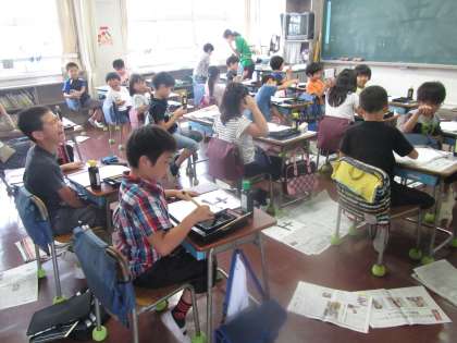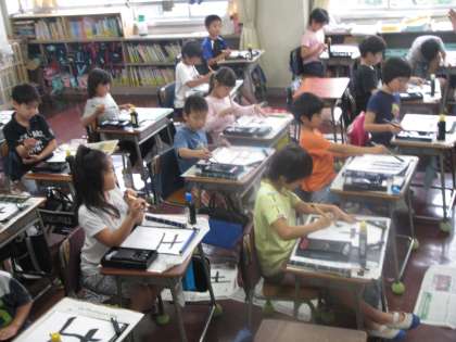 みんなすっかり筆の扱いに慣れたようで、筆のもち方もしっかりしてきました。