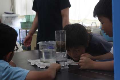 レイ隊長の楽しいお話と、実験に子どもたちも興味津々。