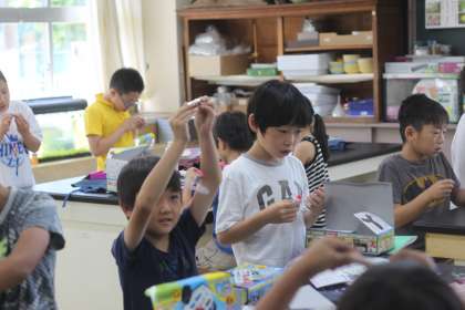 早くも前の学習を生かして、電池を2個つなごうとする子がいました。