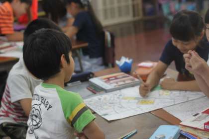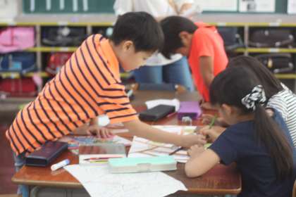 3年生はまち探検で発見したことを、次々に地図に表しています。