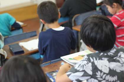 静かな教室で子どもたちの鉛筆の音が響いています。