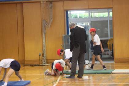 区内の大学から先生が来校し、実習生の様子を見ています。